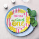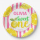 Limonada cor-de-rosa primeira festa de aniversario de meninas de papel impresso personalizado modelo, limão amarelo giro borda rosa primeira festa de aniversário pratos personalizados decor mesa