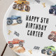 Atenção a todos os pequenos animais de festa! Prepare-se para reverter a diversão com as placas de festa de aniversário dos Monstros de Carros de Crianças. Adorado com carros monstruosos adoráveis e vibrantes, este moderno roteiro de tipografia nos convida a participar da celebração.