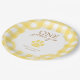 Adicione um toque doce ao seu primeiro aniversário com esta placa de papel de gingham amarelo, perfeita para uma celebração temática de recuperação de ouro. Com a frase "Um ano de Ouro" e uma impressão divertida de pata de gingham, este design pode ser personalizado com o nome e a data da festa do seu filho. É uma maneira divertida e fácil de juntar o tema da sua festa de filhotes verdes para petiscos, bolo e muito mais.