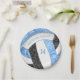 Essas placas de festa de aniversário de vôlei personalizadas apresentam a imagem de um vôlei estilizado com painéis azuis-claros, pretos e brancos, sobre os quais você pode personalizar seu texto - os painéis azul e preto do vôlei são misturados com um bonito padrão caleidoscópico floral para uma aparência texturizada que é artística e cinzenta - de katz_d_zynes