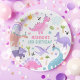 Prato De Papel Festa de aniversário do Dinossauro Rosa
