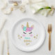 Prato De Papel Festa de aniversário Girl Plate com Unicórn & Name