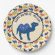 Comemore aniversários e outros eventos especiais em estilo com estas placas partidárias com uma ilustração em estilo cartoon de um camelo de bactriano ou um camelo com duas corcovas em azul médio contra um fundo de areia desértica e colorido com sua própria mensagem personalizada. O bordo exterior destas placas tem um padrão de camelos bonitos em azul médio, azul marinho, laranja e amarelo.