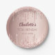 Prato De Papel Festa de aniversário rosa de dourado com o nome da