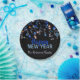 Design de placa de papel personalizada de ano novo, com fitas brilhantes e luzes delimitadoras sobre fundo preto. O texto é totalmente personalizável.