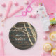 Placa de papel de Festa de casamento de árvores de inverno de madeira russa escura. A design apresenta a textura rústica de madeira escura, uma árvore de inverno simples e flocos de neve brancos. Os nomes da noiva e do noivo e a data do casamento estão em um roteiro branco moderno.