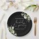 Este prato de papel elegante para festa de chá de noiva com verde botânico pode ser personalizado com suas informações em tipografia chic. Projetado por Thisisnotme©