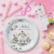 Azul cor d'água, cor d'água, chá floral, chá de panela monograma placas de papel personalizadas modelo chá de panela decor mesa