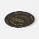 Estas modernas e elegantes placas de papel são perfeitas para a sua festa de formando. Eles têm uma borda de triângulo e espaço para você adicionar o nome do formando e o ano de aula. A palavra "Formando" é escrita em tipografia cursiva com um aspecto texturizado a ouro falso. O resto do texto é amarelo ouro e azul sobre fundo castanho escuro.