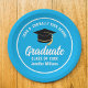 Esta moderna placa de papel personalizado, azul e branco, apresenta a tipografia típica do seu segundo grau ou nome da faculdade para a classe de 2025. Personalize com seu ano de graduação com o script de chic manuscrito e o boné de formando preto para decoração personalizada de formando de excelente.