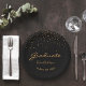 Uma celebração moderna e moderna da graduação. Um fundo preto chic com confete de ouro. O texto: Formando é escrito com um script de estilo com letras grandes. Modelo de nome e ano. Os guardanapos estão disponíveis na nossa loja.