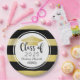 As placas de papel de graduação personalizadas apresentam o ano de classe e o nome do formando em um roteiro de caligrafia na moda e elegante em preto com boné de cor dourada e fundo padronizado de listras em negrito. Rolar design de sotaque.