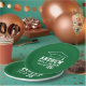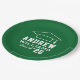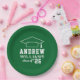 As placas de papel de graduação redonda personalizadas apresentam um design verde e branco (pode ser modificado via "Personalizar!") com um boné de formatura e texto personalizado para o nome do formando e o ano de classe.
