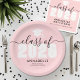 Classe de 2025 Placa de Graduação Elegante Cor-de-Rosa-Blush. Celebre esse marco com uma na moda e uma placa personalizada de papel de graduação, perfeita para servir comidas em uma festa de formatura. Apresentando a "Classe de 2025" (ou qualquer ano) em branco a negrito, juntamente com um ícone de boné de formatura branco correspondente em um fundo cor-de-rosa com pincel suave. O texto remanescente é preto clássico para contraste moderno. Na parte inferior, há um espaço personalizável para o nome da escola do formando, fazer-o um partido único e significativo, essencial. Totalmente personalizável, você pode ajustar as cores e o texto para corresponder às cores da escola ou ao estilo pessoal, fazer-o como uma adição perfeita à celebração!