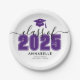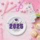 Prato de papel de formatura preto e roxo ousado e elegante da turma de 2026.