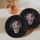 Um design de festas de Dia das Bruxas de chico assustador, com uma ilustração do crânio floral, tocado com flores cor d'água rosa e púrpura em um fundo preto enfumaçado.