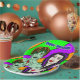vampiro estilo pop, verde limão zombie e roxo. Chapas de papel de festa de Halloween.