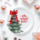 Placas de festas de Natal com árvore de Natal e arco vermelho. Que divertido!
