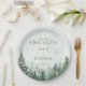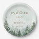 Esses elegantes pratos de festa de noivado com floresta de pinheiros em aquarela rústica podem ser personalizados com suas informações em tipografia moderna. Desenhado por Thisisnotme©