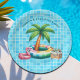 Faça uma piscina inesquecível com este azure - design de azulejo azul-claro do pátio que inclui uma palmeira, um flamingo fofo e algumas bebidas refrescantes frias da piscina.