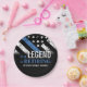 Este design apresenta uma bandeira da polícia com listras pretas e brancas, e uma fina faixa azul de linha também. O texto "A Legenda está se aposentando" fica acima do nome personalizável do polícia oficial aposentado, xerife, capitão ou chefe. Celebre este marco em estilo!