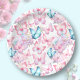Prato De Papel Festa de Verão azul-roxa-borboleta-rosa