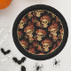 Esta placa de papel gótica do Halloween apresenta um padrão de crânios assustadores flutuando num abismo negro. Cada crânio é adornado com rosas vermelhas. Os seus olhos vazios e sem alma são nitidamente contrastados contra a coroa gótico e buquês de flores mortos.