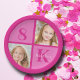 Placa de papel de festa de aniversário quadrado fotográfico rosa quente 2 para uma menina ou criança. Comemore o aniversário do seu filho com fotografias bonitas delas neste acrescente o seu próprio decoro fotográfico em rosa-menina. Adicione seu nome e idade.
