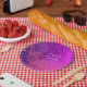 Pratos de Festa Personalizados Elefante Roxo Rosa Laranja e Dourado.