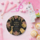 Estas "duas selvagens" placas de papel de segunda festa de aniversário de safari com o tema da "selva selvagem" apresentam folhas falsas de ouro (girafa, leão e macacos), folhagem dourada e rosa da selva, e uma aspersão de confete de ouro sobre fundo preto. Adicione o nome da aniversariante e outro texto em ouro e branco.