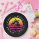 Um design simples e elegante de palmeiras com pôr do sol retrô para uma festa de solteira.