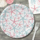 Um padrão de aquarela de praia fofo e moderno, ostentando uma mistura de tons de rosa e azul turquesa cativantes que lembram um paraíso de casa de praia. Abrace a essência do verão com este design inspirado na costa, adornado com estrelas-do-mar caprichosas que exalam um charme náutico. Eleve ainda mais a atmosfera explorando uma miríade de cores de fundo, permitindo que você personalize o visual para a sua estética costeira. Pratos de papel para festa de revelação de gênero, tema de praia tropical costeira azul turquesa rosa festivo fofo de verão com estrela-do-mar.