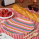 As placas de papel de listras brilhantes festivas são perfeitas para uma reviravolta inesperada nas cores tradicionais do Natal. Este design colorido de risca divertida apresenta tons cor-de-rosa, coral, ouro amarelo e verde-rosa. Perfeito para uma mesa de férias divertida e moderna ou em qualquer época do ano.