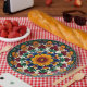 Traga a flor para o seu buffet com Fiesta Floraframe, a placa redonda que é basicamente uma coroa floral para os seus peitos. Apresentando uma flor amarela radiante no centro rodeada por camadas de pétalas vermelhas, verdes, azuis e roxas, esta design é um caleidoscópio de cor e simetria. Os pop externos com os repetidores de motivos florais e os delicados pontos brancos, todos colocados contra uma canvas cerâmica nítida que faz com que cada tamale pareça uma obra-prima. Perfeito para doações de pan de muerto, salsa ou doces que desaparecem misteriosamente. Sem texto, sem confusão, apenas pura alegria de Día de los Muertos em cada mordida. Quer você esteja hospedando uma cabana soprada no cheio ou apenas queira que sua mesa gritar "comemoração", esta placa se encaixa com talento.