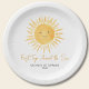 These cute paper plates are decorated with a yellow watercolor smiling sun and say "First Trip Around the Sun" in stylish script typography.