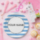 Legal, azul e branco, e um nome modelo. Clique em personalizar e adicione seu nome.