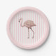 Prato De Papel Flamingo Pink Stripe Birthday Tropical