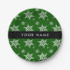Prato De Papel Flocos de neve brancos, verdes, seu nome, personal