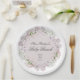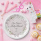 Personalize a celebração do seu chá de fraldas com esta charmosa placa de papel, apresentando delicadas flores doces de ervilhas em tons suaves de rosa, lavanda e branco. A borda floral cria um olhar romântico, inspirado no jardim, enquanto o formato redondo adiciona um toque único e memorável. Perfeito para um brunch de bebê, chá ou aspersor, este design combina elegância com um novo toque de primavera. personalize sua mesa com este prato com nome personalizado e data para o seu brunch de bebê.