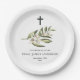 Prato De Papel Flor floral branco do batismo cristal