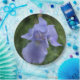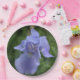 Bonito íris azul periwinkle com centro amarelo e branco. Bonito azul roxo a brilhar floral no primavera. A vegetação ao fundo se infiltrou no jardim. Fotografia original de TamiraZDesign.