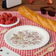 Design Floraison em pratos de papel. Guardanapos, papel tissue e papel de embrulho combinando
