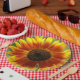 Adicione elegância à sua festa, piquenique ou outro evento social com estas bonito placas de papel que exibem a imagem de um girassol colorido de cor amarela e bronze. Um design floral adorável! Selecione o estilo e o tamanho da sua placa de papel.