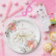Ouro elegante e pratos florais cor-de-rosa. Design apresenta elementos florais em rosa, branco e verde, script de tipografia dourada e confetti de brilho. Personalize com um nome.