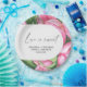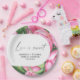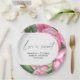 Cartão de chá de panela com cor de água rosa-pedófilo com flores cor-de-rosa, com ilustração aquosa de buquê com verde. Manuscrito caligráfico elegante, perfeito para primavera, verão ou casamentos de outono.