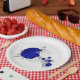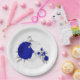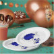 Flores rosas, azuis e brancas, com folhas prateadas, em papel botânico para casamentos.