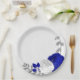 Prato De Papel flores azuis reais e brancas prateadas