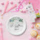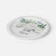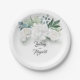 Flores brancas e eucalipto verde-água cor-de-água pratos de papel para casamentos
