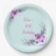 Prato De Papel Flores de Aquarela Teal e Purple 90