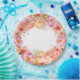 Adicione uma caixa de texto se desejar e personalize com nome, data do evento ou texto personalizado. Apresentando flores cor-de-rosa e frutas cítricas.